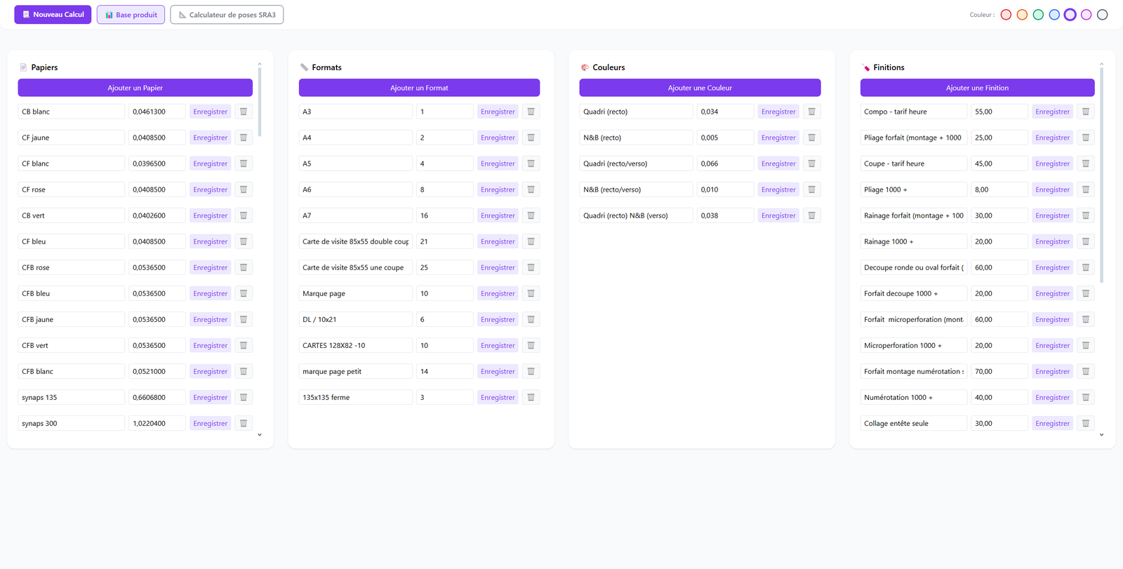 Base de données interne : on renseigne une seule fois les éléments de tarification.